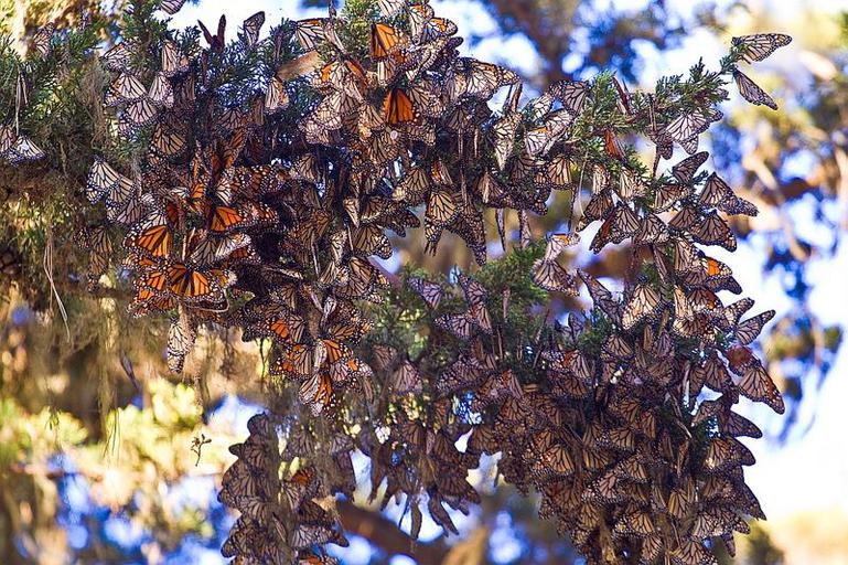 Western monarchs wintering in the Monarch Grove Sanctuary in Pacific Grove, California.