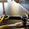 1. Lab gas valve in OFF position; 2. Lab gas valve in ON position with Bunsen burner in background; 3 & 4. Light burner by running lit match up the side until it lights the gas; Adjust the height of the flame with the cog underneath the burner. (Click on photos to enlarge.